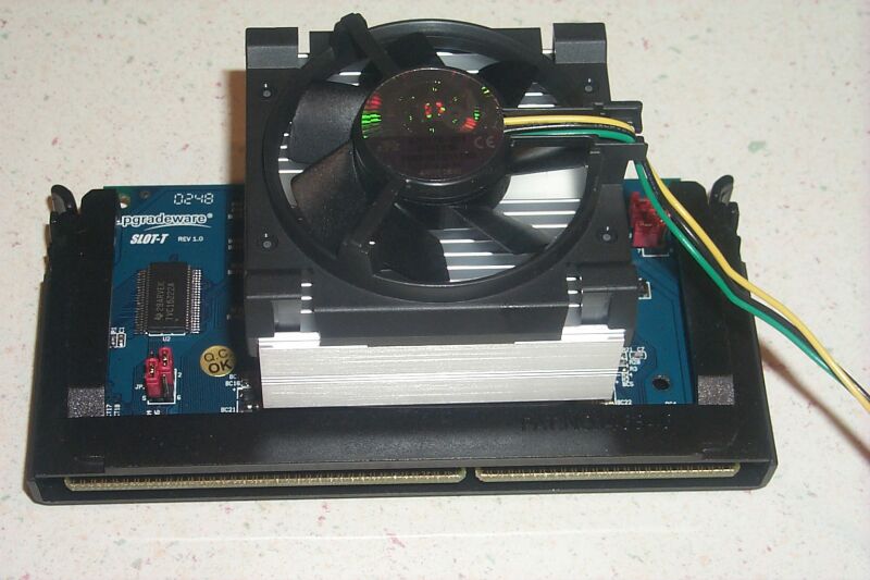 - Lack of warranty coverage on the entire fan/CPU/adapter assembly. Individually, these items are covered by Upgradeware (the Slot-T) and Intel (the Celeron and heatsink/fan), but who are you going to call if there's a problem when you push the power button? Also, lack of domestic technical support for US customers.