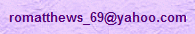 Sorry for the incovenience, but with the amount of spam I get at this address, I'm trying a little trick I read about, which is to display my email address as an image file. This means you won't be able to click on it or copy/paste it into your e-mail client, but will have to type it in manually. Please understand that the added few seconds of inconvenience to you may translate to hours of spam-deleting time saved for me. Here's the address image: